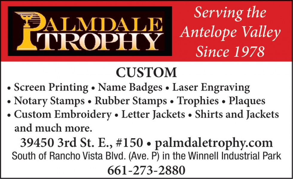 661-273-288039450 3rd St E #150Palmdale, CA 93550(Trophy Store)