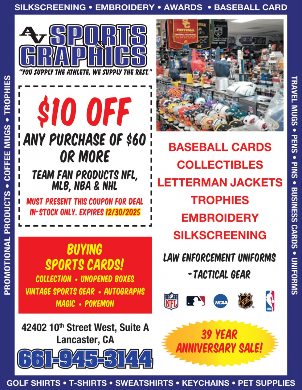 Nov 29, 2025. AV Sports & Graphics Sporting Goods Ads from The Antelope Valley Press