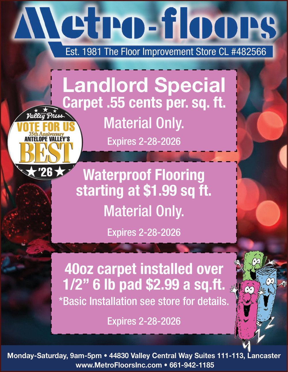 Jan 30, 2026. Metro-Floors, Inc Home Improvements Ads from The Antelope Valley Press