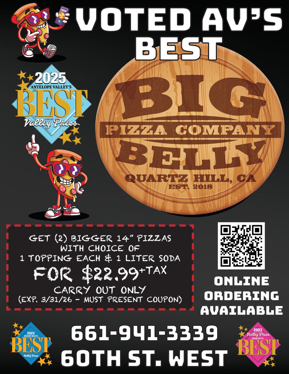 661-941-333942458 60th St W #115Lancaster, CA 93536(Restaurant)