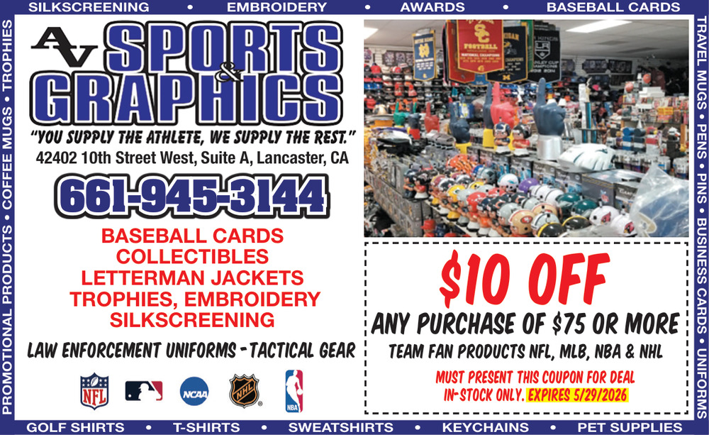 Apr 27, 2026. AV Sports & Graphics Sporting Goods Ads from The Antelope Valley Press